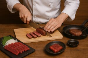 炙りやユッケ、ステーキとして加熱しても美味しく、衛生管理と温度管理を徹底することで安全かつ上質な味わいを楽しめます。