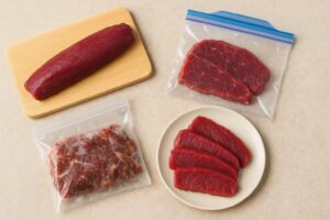 保存中に温度変化が起こると、肉の細胞が破壊されてドリップ(解凍時に出る水分)が増え、風味や食感が大きく損なわれるため、家庭の冷凍庫でもできるだけ開閉を控え、温度変動の少ない奥に保管するのが理想です。