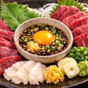 部位や気分に応じてタレを使い分けることで、同じ馬刺しでも違った楽しみ方ができるのも魅力です。