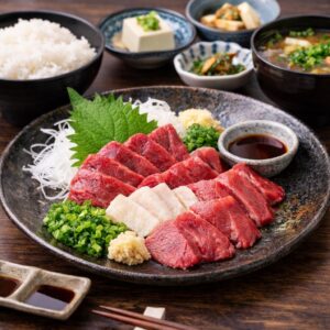 赤身中心でクセが少なく、定食スタイルも分かりやすいため、初めての馬刺し体験にも取り入れやすい構成になっています。