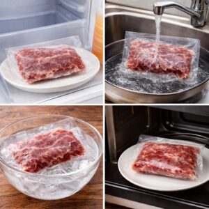 まずは冷蔵庫での低温解凍を基本とし、急ぐ場合のみ流水や氷水を併用します。